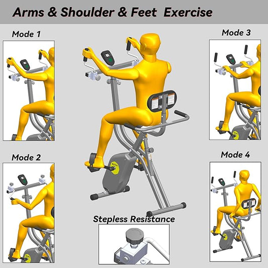 Folding Exercise Bike - Stationary Bikes for Home Use, Arms and Feet Workout, Foldable Indoor Cycling Machine - Magnetic with 8-Level Adjustable Resistance and 300 lbs Capacity