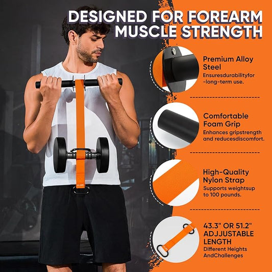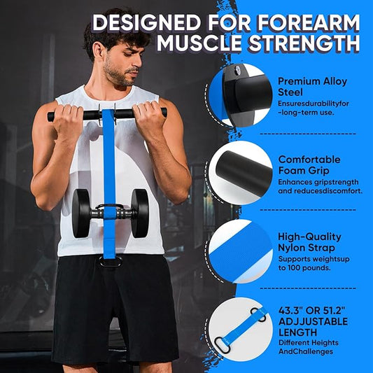 Forearm Strengthener and Wrist Roller, 43.3 inch Or 51.2 inch Ultra Strong Nylon Webbing, Forearm Exerciser with Quick Locking Mechanism, Ideal for Hand, Wrist and Forearm Strength Training