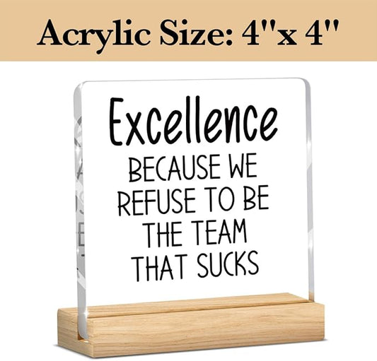 Funny Office Decor, Team Gifts for Employees, Best Team Gift, Boss Gifts for Women Men, Excellence Because We Refuse to Be The Team That Sucks, Acrylic With Wooden Stand for Office Desk Table Shelf