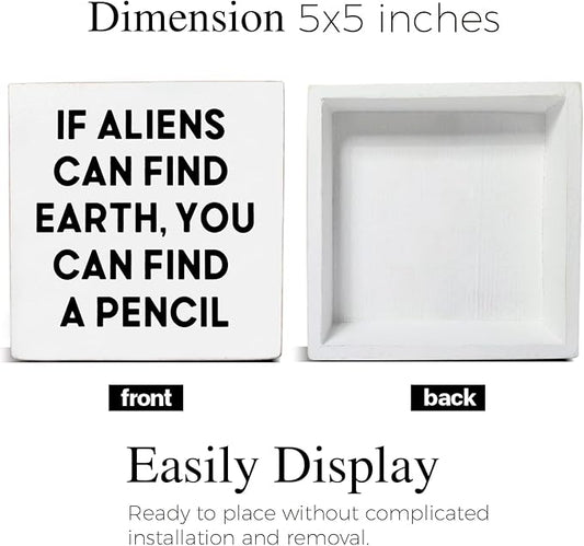 Funny Teacher Gifts for Students, If Aliens Can Find Earth You Can Find a Pencil Wood Sign, Science Biology Classroom Study Room Decor