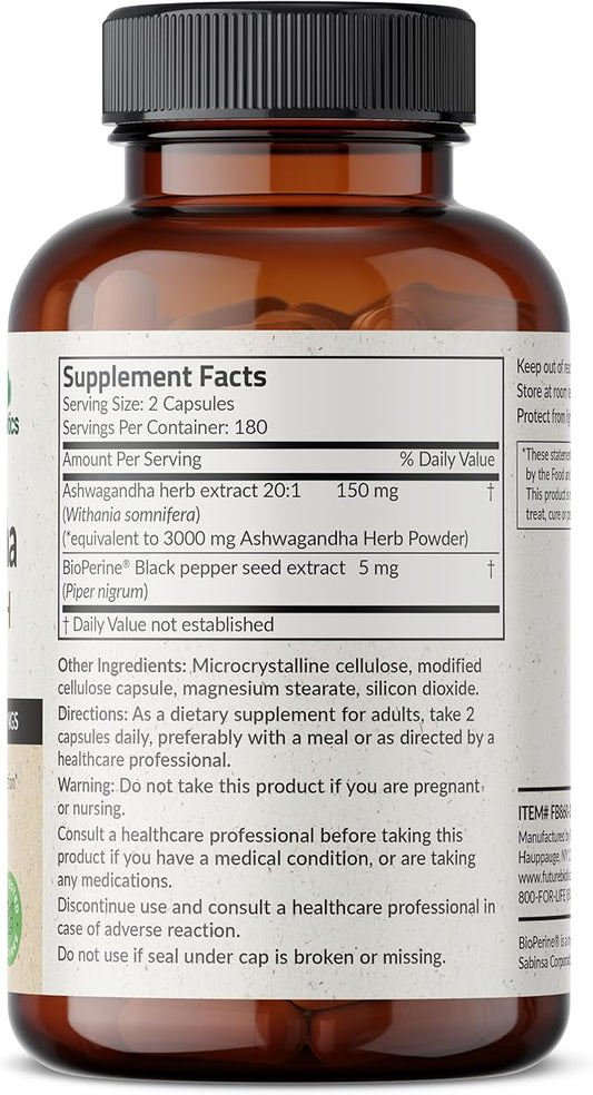 Futurebiotics Ashwagandha Extra Strength Stress & Mood Support with BioPerine - Non GMO Formula, 360 Vegetarian Capsules