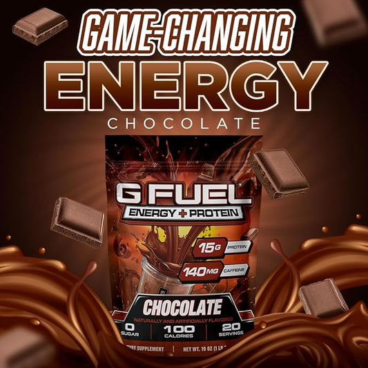 G Fuel Protein + Energy Drink Powder, Pre Workout Caffeine Mix for Gaming, Sugar Free Focus Amino, Vitamin + Antioxidants, 19oz (Chocolate, 20 Servings)