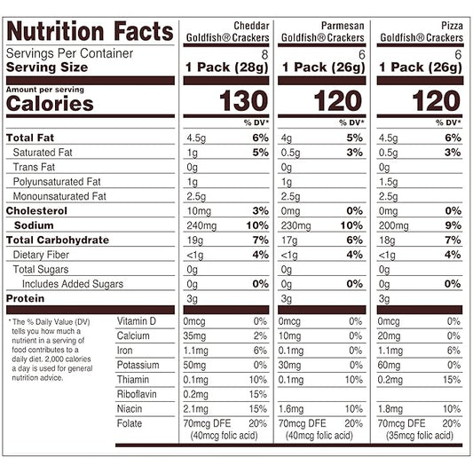 Goldfish Crackers Say Cheeeese Variety Pack with Cheddar, Pizza and Parmesan, Snack Packs, 20 Ct