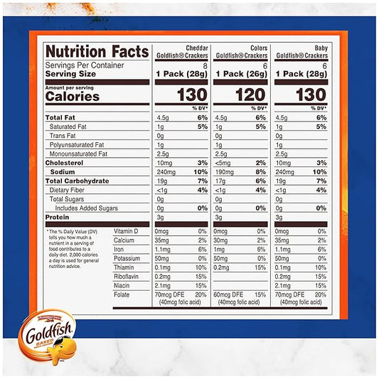 Goldfish Family Faves Crackers, Cheddar, Colors and Baby Crackers Snack Packs, 20-Ct Variety Pack