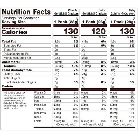 Goldfish Family Faves Crackers, Cheddar, Colors and Baby Crackers Snack Packs, 20-Ct Variety Pack (Pack of 2)