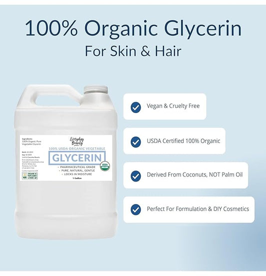 100% Organic Glycerin - Bulk 1 Gallon - For Skin & Hair - Food Grade - USDA Certified - Not From Palm Oil - Perfect Skin and Hair Moisturizer