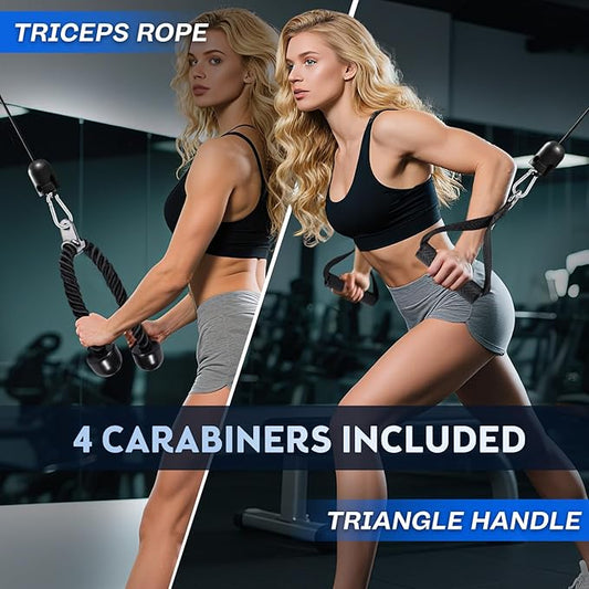 10-in-1 Cable Machine Attachments Set for Gym - Includes Tricep Rope, V-Bar, Straight Bar, D-Handle, Ankle/Wrist Straps, Storage Bag - Compatible with LAT Pulldown & Home Gym Cable Machines