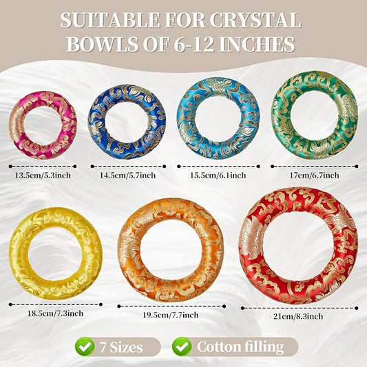 10 Pcs Singing Bowl Cushion Set 7 Silk Cloth O Ring with 3 Crystal Singing Bowl Mallet Include Solid and Hollow Stick Wood Handle Rubber Mallet for 6-12" Tibetan Sound Meditation(Rainbow)