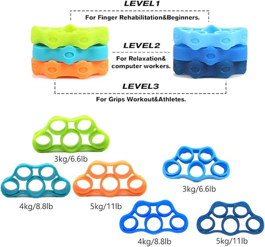 Hand Grip Strengthener, Finger exerciser, Grip Strength Trainer (6 PCS),NEW MATERIAL,Forearm grip workout, Finger Stretcher, Relieve Wrist Pain, Carpal tunnel. (Finger exerciser)
