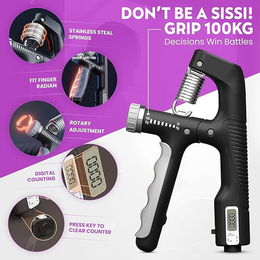 Hand Grip Strengthener - 5-100KG Adjustable Hand Exerciser Grip Strength Trainer for Muscle Building, Hand Therapy and Recovery - Relieve Pain for Arthritis, Carpal Tunnel, Includes Grips and