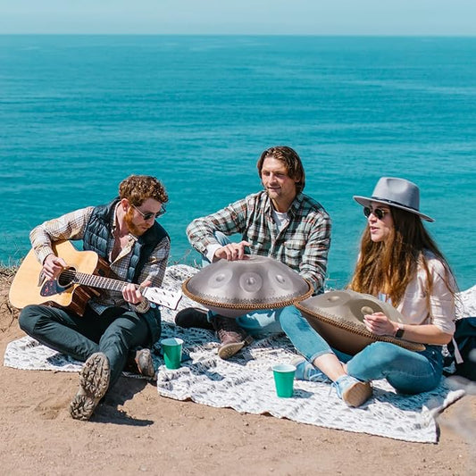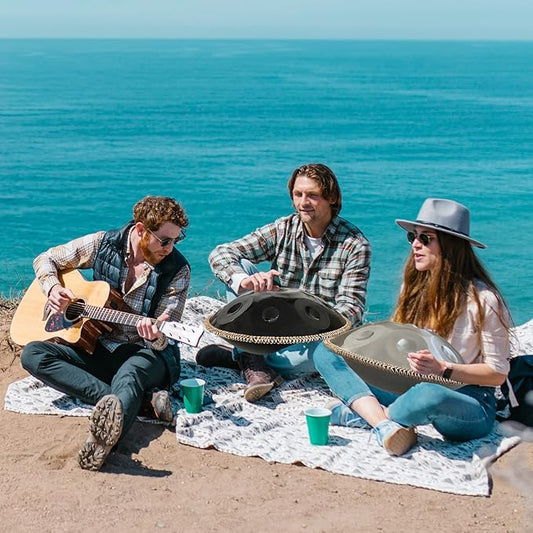 Handpan-Classic 10 Notes Black Print Hand Pan,Premium 432HZ 22 Inches D Minor Steel Handpan Drum Set,Adult's Music Steel Pan Instrument