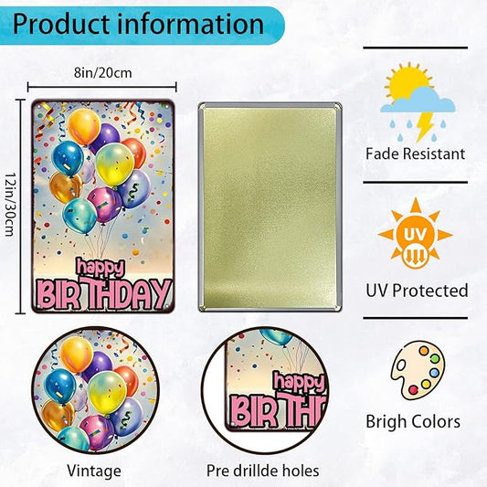 Happy Birthday Vintage Tin Sign Metal Sign Balloon Family Birthday Party Spring Summer Farmhouse Poster For Home Garden Bar Club Coffee Sign 8x12 Inch