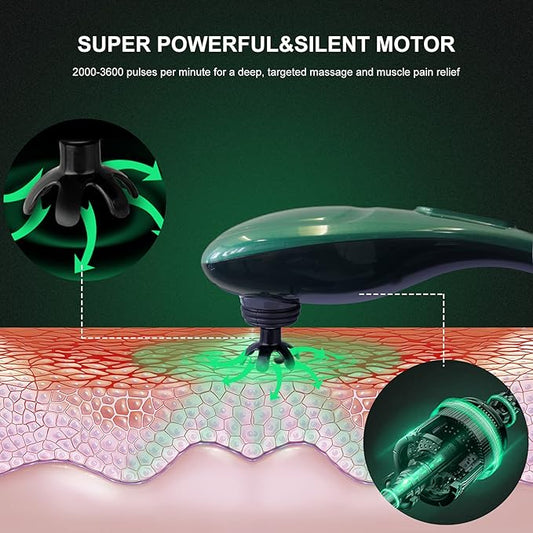 Handheld Back Massager | Deep Tissue Percussion Massage for Back, Neck, Shoulders, Waist and Legs (dark green)