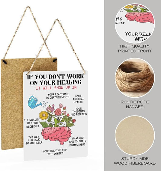 Healing Brain Mindfulness Posters Mental Health Awareness Psychologist Gift Wood Decor Sign Positive Affirmations Wall Decor for Consultation Room Therapy Office Bedroom Living Room