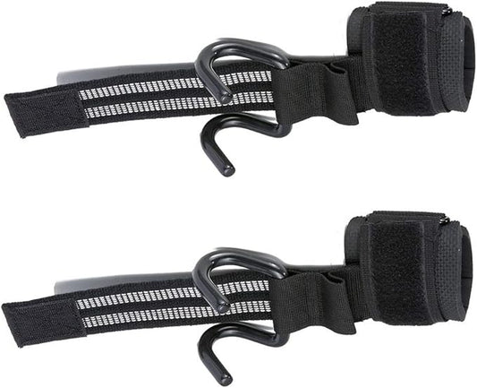 Heavy Duty Strap with pro Metal Lifting Steel Hooks Improves Grip for Weightlifting, Powerlifting, Bodybuilding & Deadlift - Neoprene Padded Wrist Wraps Provides Support for Men & Women