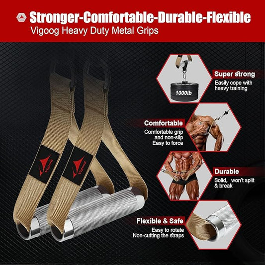 Heavy Duty Metal Workout Handles,Replacement Grip Attachments for Cable Machines, Resistance Bands, LAT Pulldown, Strength Exercise Home Gym & Commercial Fitness Equipment
