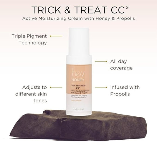 Hey Honey Trick and Treat CC Cream SPF 46 | Active Moisturizing Color Correcting Cream with Honey & Propolis | Best Cover For Rosacea, Skin Redness & Mature Skin | Cruelty-Free | 1 oz (Light-Medium)