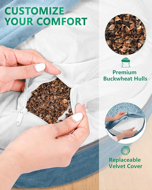 Hihealer Meditation Cushion - Large Velvet Zafu Floor Pillow for Adults and Women - Comfortable Yoga Pillow with Traditional Tibetan Buckwheat Filling for Meditation and Relaxation