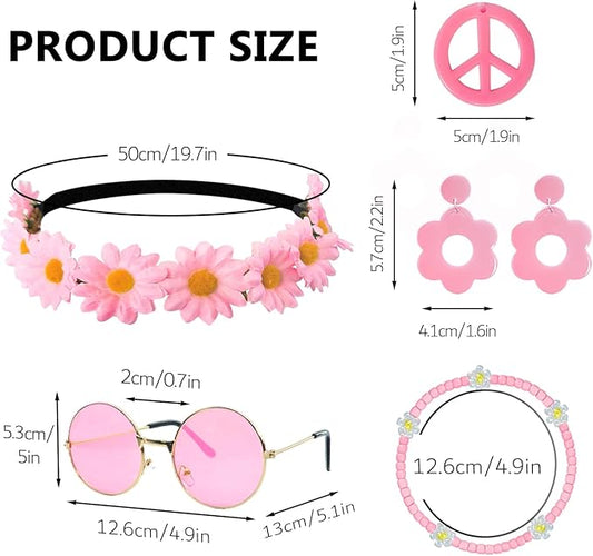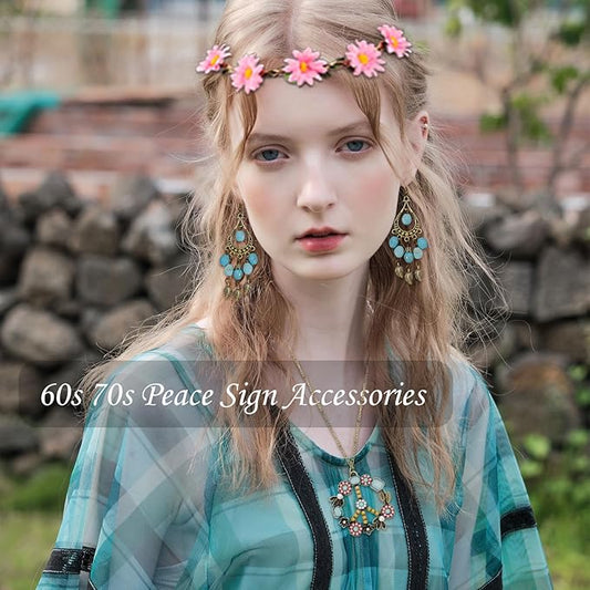 Hippie Costume Accessories for Women Peace Sign Earrings Necklace Flower Headband Sunglasses 60s 70s Accessories