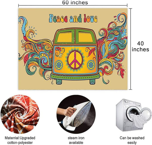 Hippie Bus 70s Tapestry Peace Love Groovy Car Wall Hanging Tapestry for Kids Bedroom Living Room Dorm Man Cave Background(60x40 Inch)