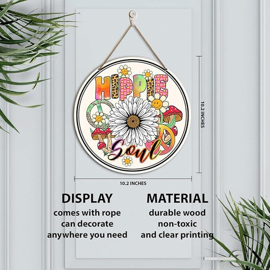 Hippie Peace Sign Wall Decor, Hippie Peace Sign for Front Door Home Living Room Bedroom, Peace and Love Sign, Boho Hippie Peace Round Wood Hanging Signs Decorations, Hipple Soul Sign