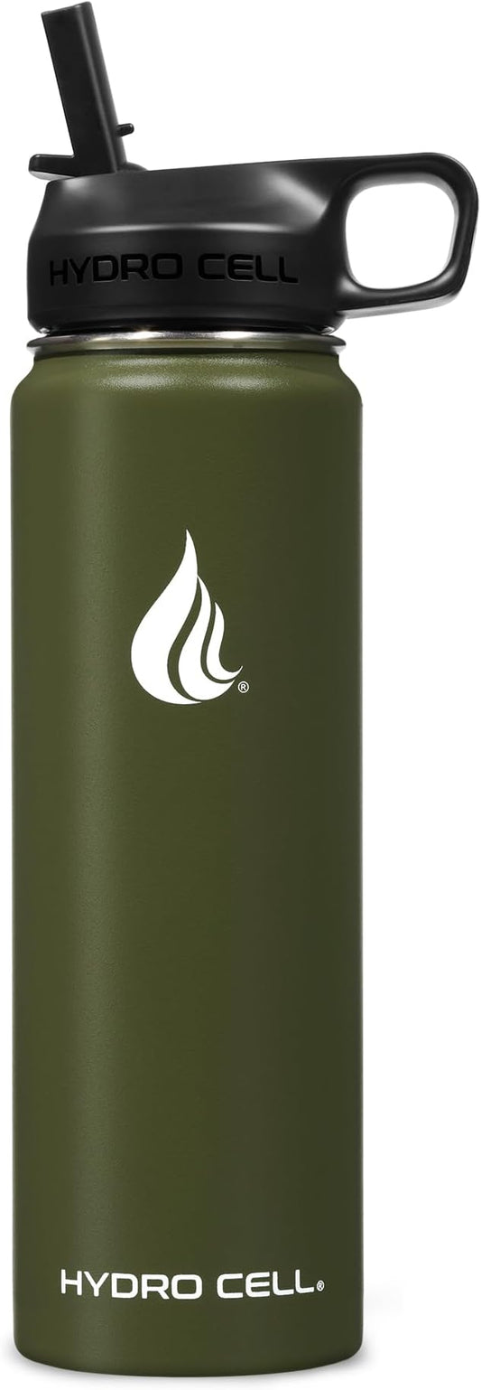 HYDRO CELL Stainless Steel Insulated Water Bottle with Straw - For Cold & Hot Drinks - Metal Vacuum Flask with Screw Cap and Modern Leakproof Sport Thermos for Adults (Army 24oz)