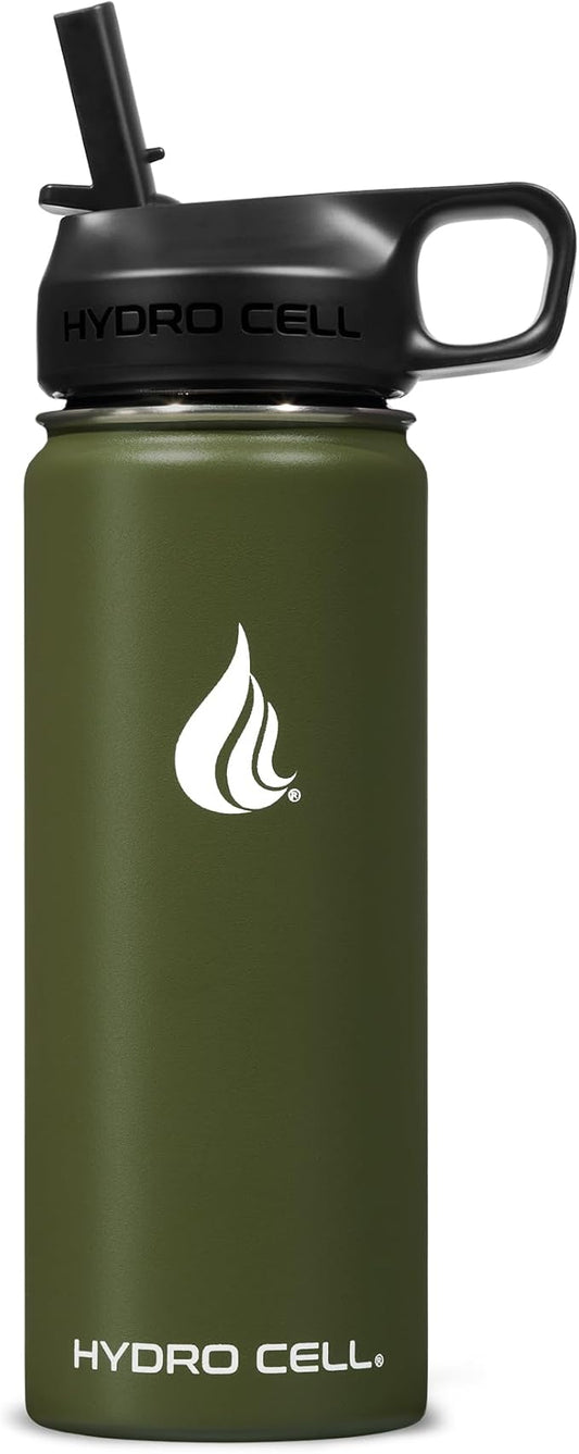 HYDRO CELL Stainless Steel Insulated Water Bottle with Straw - For Cold & Hot Drinks - Metal Vacuum Flask with Screw Cap and Modern Leakproof Sport Thermos for Adults (Army 18oz)