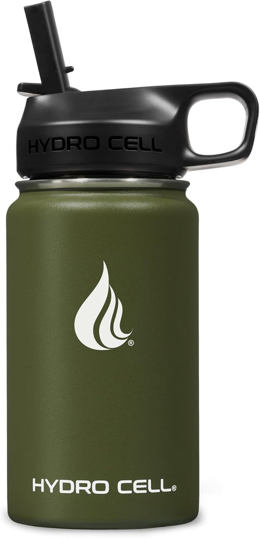 HYDRO CELL Stainless Steel Insulated Water Bottle with Straw - For Cold & Hot Drinks - Metal Vacuum Flask with Screw Cap and Modern Leakproof Sport Thermos for Adults (Army 14oz)