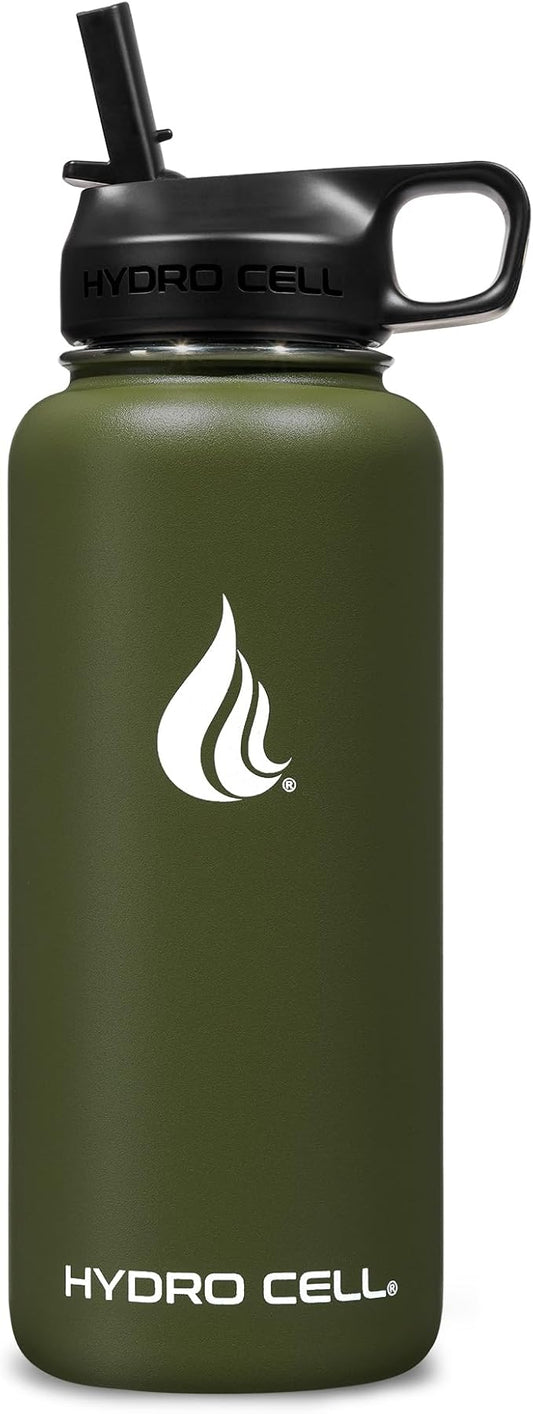 HYDRO CELL Stainless Steel Insulated Water Bottle with Straw - For Cold & Hot Drinks - Metal Vacuum Flask with Screw Cap and Modern Leakproof Sport Thermos for Adults (Army 32oz)