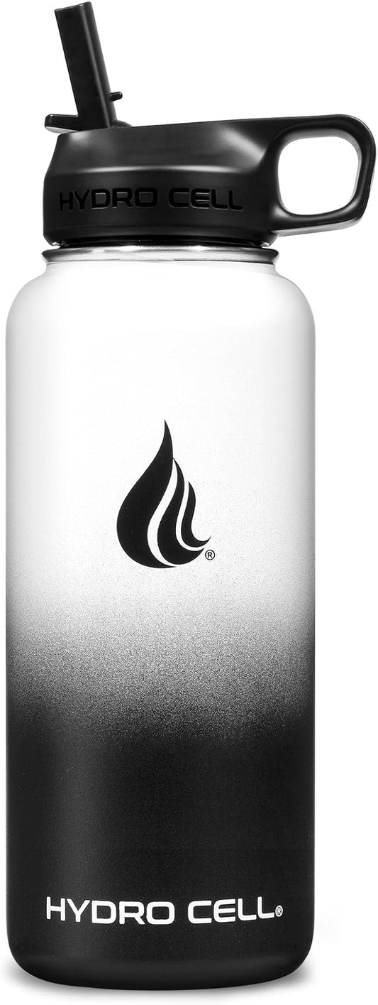 HYDRO CELL Stainless Steel Insulated Water Bottle with Straw - For Cold & Hot Drinks - Metal Vacuum Flask with Screw Cap and Modern Leakproof Sport Thermos for Adults (Black/White 32oz)