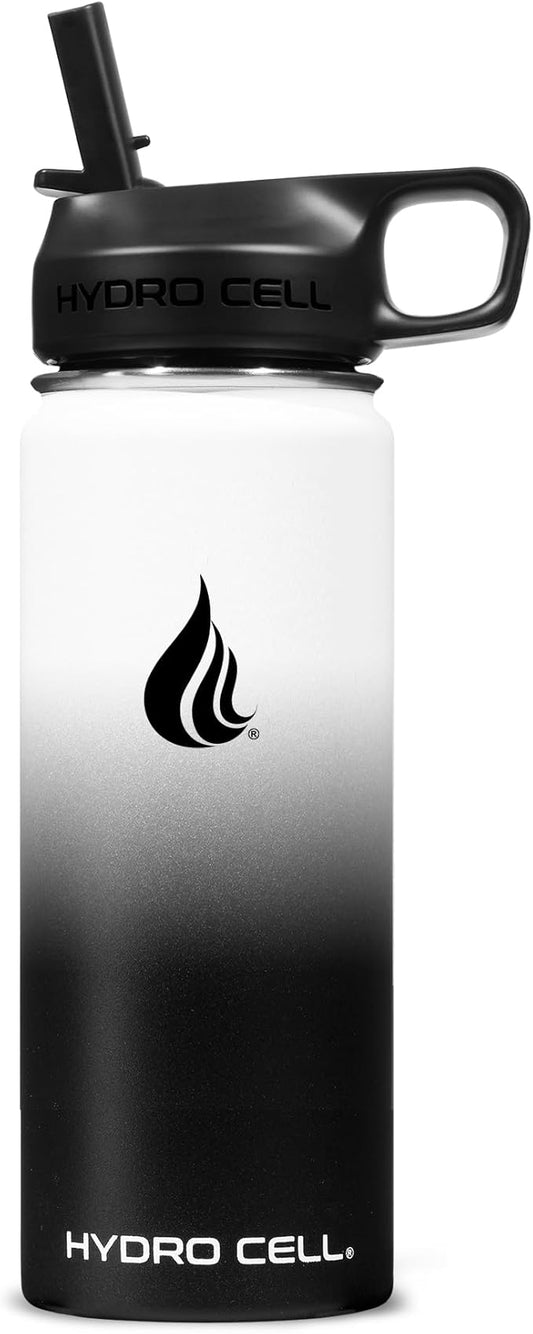 HYDRO CELL Stainless Steel Insulated Water Bottle with Straw - For Cold & Hot Drinks - Metal Vacuum Flask with Screw Cap and Modern Leakproof Sport Thermos for Adults (Black/White 18oz)