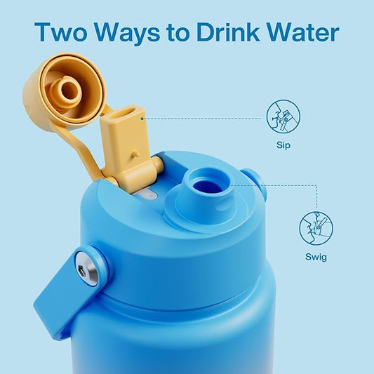 Insulated Water Bottle with Straw Stainless Steel Water Bottle, Leak-Proof, BPA-Free, Double Wall Vacuum Keeps Cold for 24 Hours for Sports, Travel, School (32 oz, Royal Blue)
