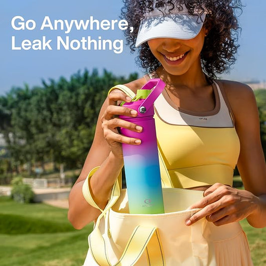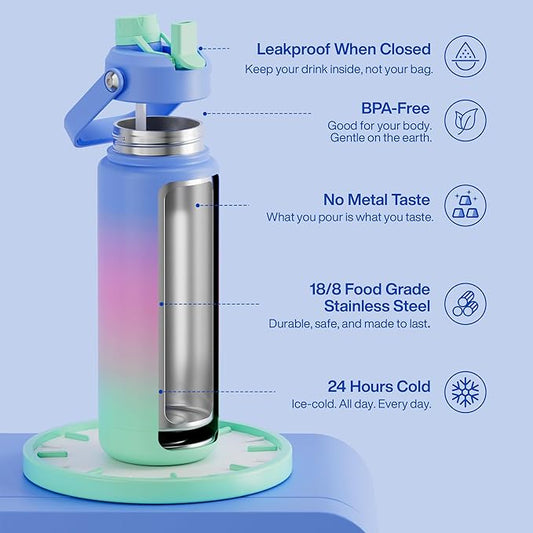 Insulated Water Bottle with Straw Stainless Steel Water Bottle, Leak-Proof, BPA-Free, Double Wall Vacuum Keeps Cold for 24 Hours for Sports, Travel, School (32 oz, Sunny Breeze)