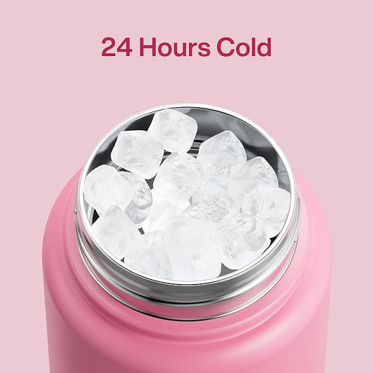 Insulated Water Bottle with Straw Stainless Steel Water Bottle, Leak-Proof, BPA-Free, Double Wall Vacuum Keeps Cold for 24 Hours for Sports, Travel, School (32 oz, Bright Magenta)