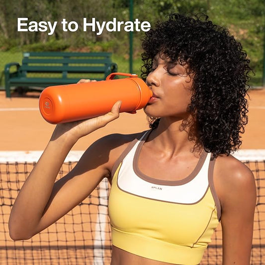 Insulated Water Bottle with Straw Stainless Steel Water Bottle, Leak-Proof, BPA-Free, Double Wall Vacuum Keeps Cold for 24 Hours for Sports, Travel, School (32 oz, Tawny Orange)