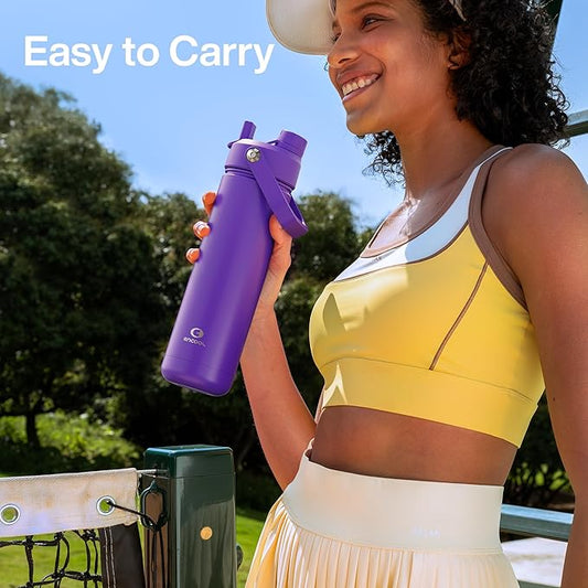 Insulated Water Bottle with Straw Stainless Steel Water Bottle, Leak-Proof, BPA-Free, Double Wall Vacuum Keeps Cold for 24 Hours for Sports, Travel, School (32 oz, Violet)