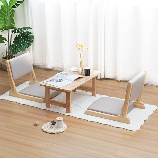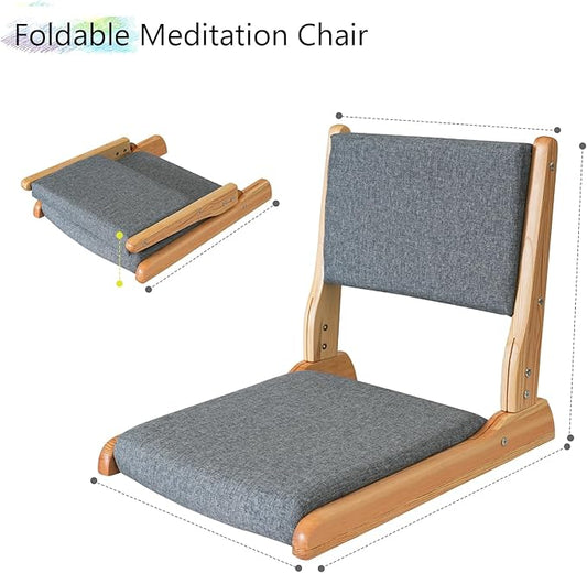 Japanese Floor Chair with Back Support, Foldable Meditation Chair, Legless Tatami Chair with Cushion, Floor Seat for Living Room, Bedroom, Bay Window (1, Gray)