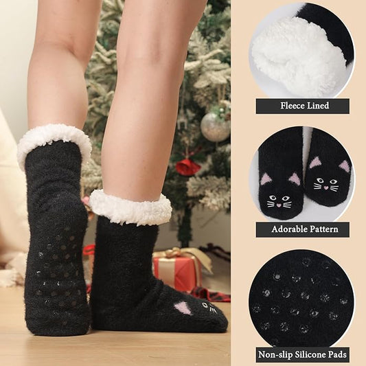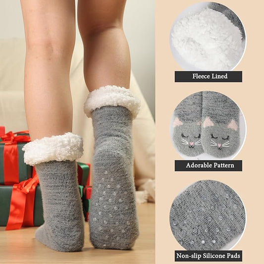JaosWish Cat Fuzzy Socks Womens Pilates,Postpartum Essentials Non Slip Grip Slippers Hospital Socks for Labor Delivery