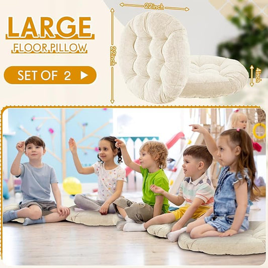 Jerify 4 Pcs Floor Pillow Cushions 22 x 22 Inch Round Square Large Meditation Floor Pillow for Classroom Adult Meditation Picnic Party Cushion for Seating Gift Christmas(Beige,Round)