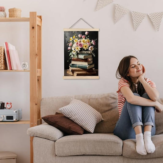 JINYO Vintage Floral Bookish Wall Art, 12x16 Inches, Rectangular, Multicolor, Vertical, Wall Mount, Matte Finish, For Bedroom, Living Room, Office, Kitchen, Nursery, Kids Room