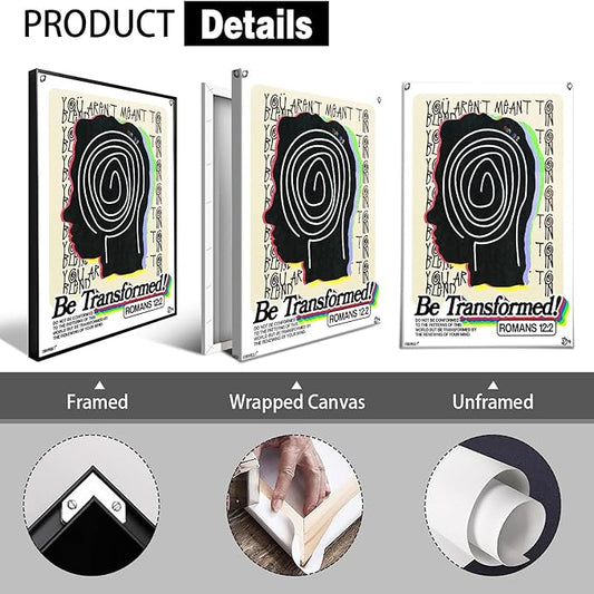JMGHKL Christian Wabstract Wall Art Be Transformed Bible Verse Romans Canvas Posters Inspirational Daily Reminder Painting Church Religious Scripture Motivational Prints For Home Decor 24x36in Framed