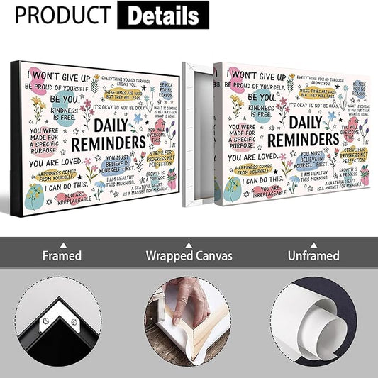 JMGHKL Daily Reminders Inspirational Canvas Wall Art Trendy Motivational Positive Affirmations Posters Uplifting Mental Health Wall Decor For Home Office Classroom 16x24in Wrapped Canvas