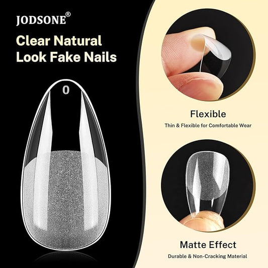 JODSONE Droplet Shape Nail Tips Soft Nail Gel Tips Full Cover Half Matte Clear Gelly Press on Flase Nail Tips for Extension Nail Manicure 12 Sizes 240Pcs