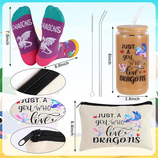 6 Pieces Dragon Gifts Set for Women Dragons Lovers Just a Girl Who Loves Dragon Gifts for Her Daughter Friend Sister Dragons Lovers