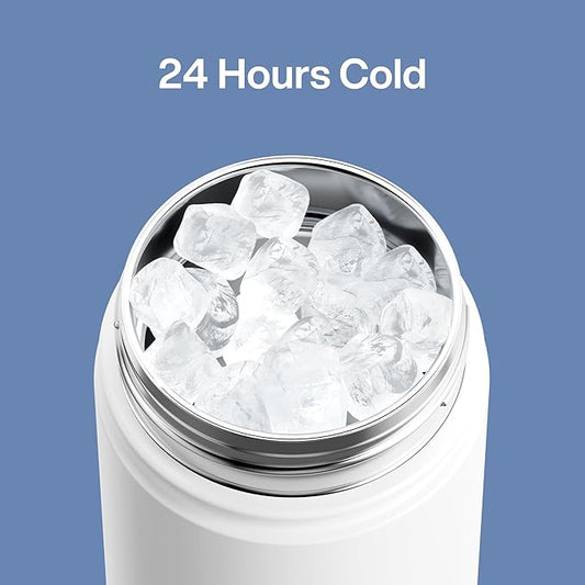 Kids Insualated Water Bottle with Straw - 12oz Stainless Steel Water Bottle with Dual Spouts, Leak-Proof, BPA-Free, Double Wall Vacuum Keeps Cold for 24 Hours for Sports, Travel, School (Polar White)
