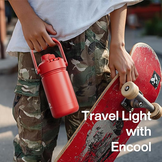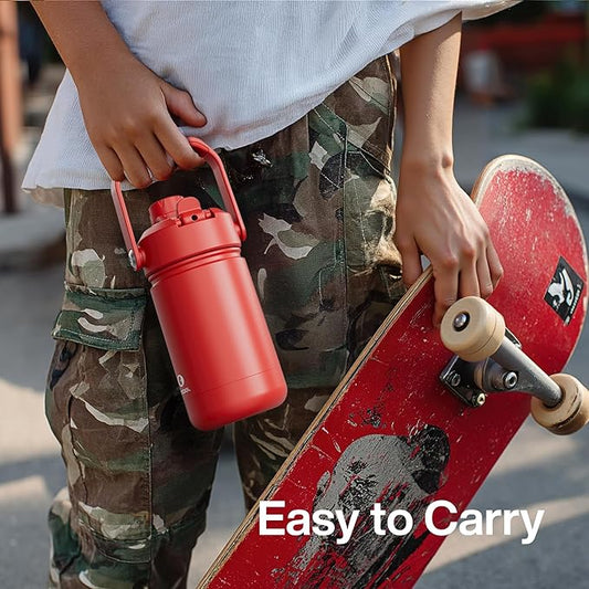 Kids Insualated Water Bottle with Straw - 12oz Stainless Steel Water Bottle with Dual Spouts, Leak-Proof, BPA-Free, Double Wall Vacuum Keeps Cold for 24 Hours for Sports, Travel, School (Raw Umber)