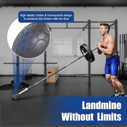 Landmine Attachment for Barbell, with Portable Strap Handle Accessory, Barbell Ball for Press Row Spin Split Squats, Durable Rubber Landmine Bomb Attachment, Fits 2 Inch Olympic Bars