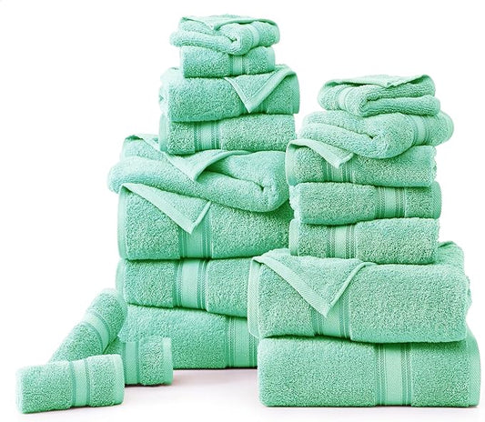 Lane Linen 100% Cotton Luxury Bathroom Towel Set - 18 Pcs - Zero Twist, Quick Dry, Super Soft & Highly Absorbent - 6 Bath Towels, 6 Washcloths, 6 Hand Towels - Tumble Dry regains Fluffiness - Sea Port