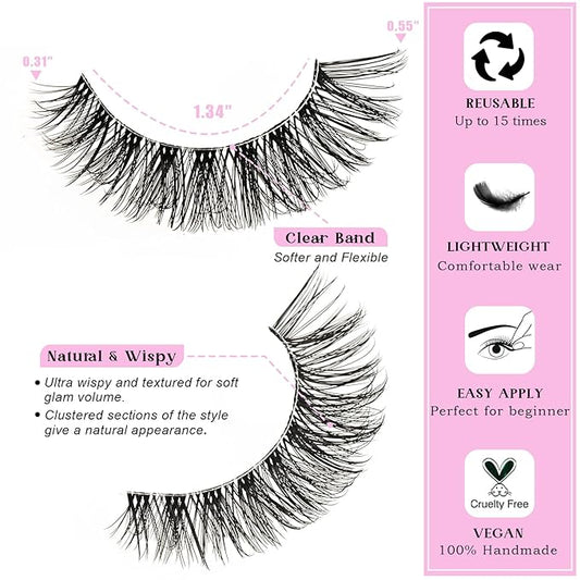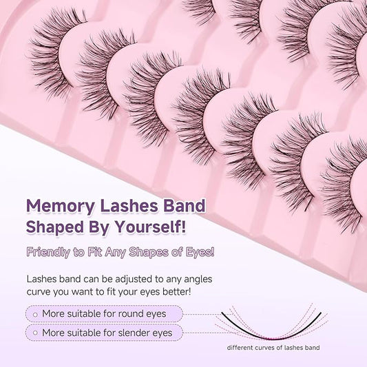 Lashes False Wispy Eyelashes Natural Cat Eye Lash Strips 10 Pairs Fake Mink Eyelash Pack Natural Look Fluffy Strip Lashes Set Clear Band Easy Eyelashes for Beginners with Cluster Looking