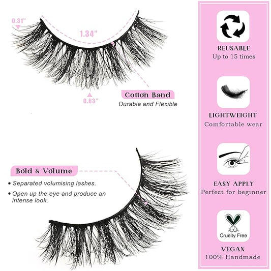 Lashes False Eyelashes Wispy Fake Mink Lash Strips Fluffy Natural Strip Eyelash 9-16mm Full Volume Lashes Natural Look 14 Pairs Wispies Medium Spiky Manga Pestañas for Women